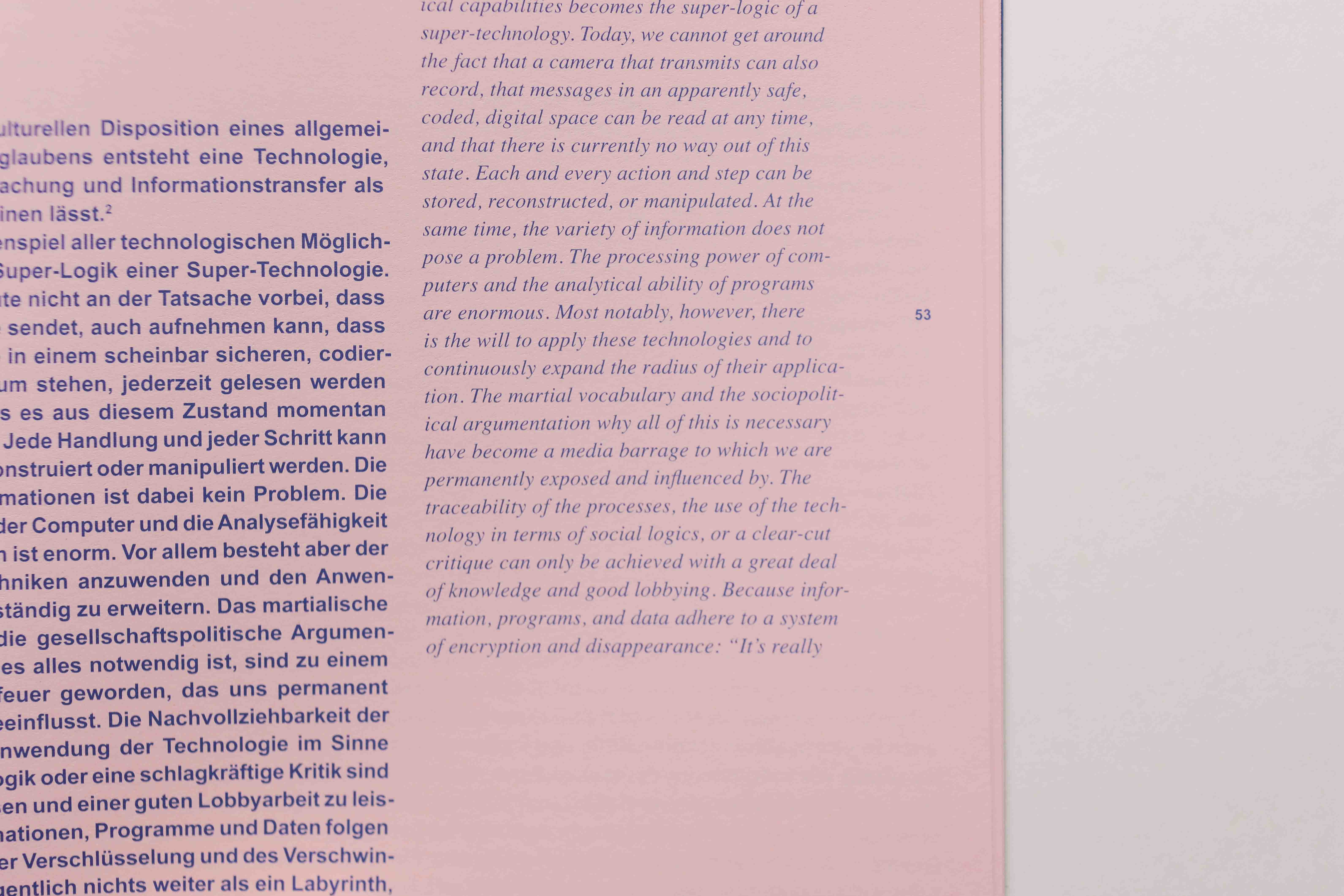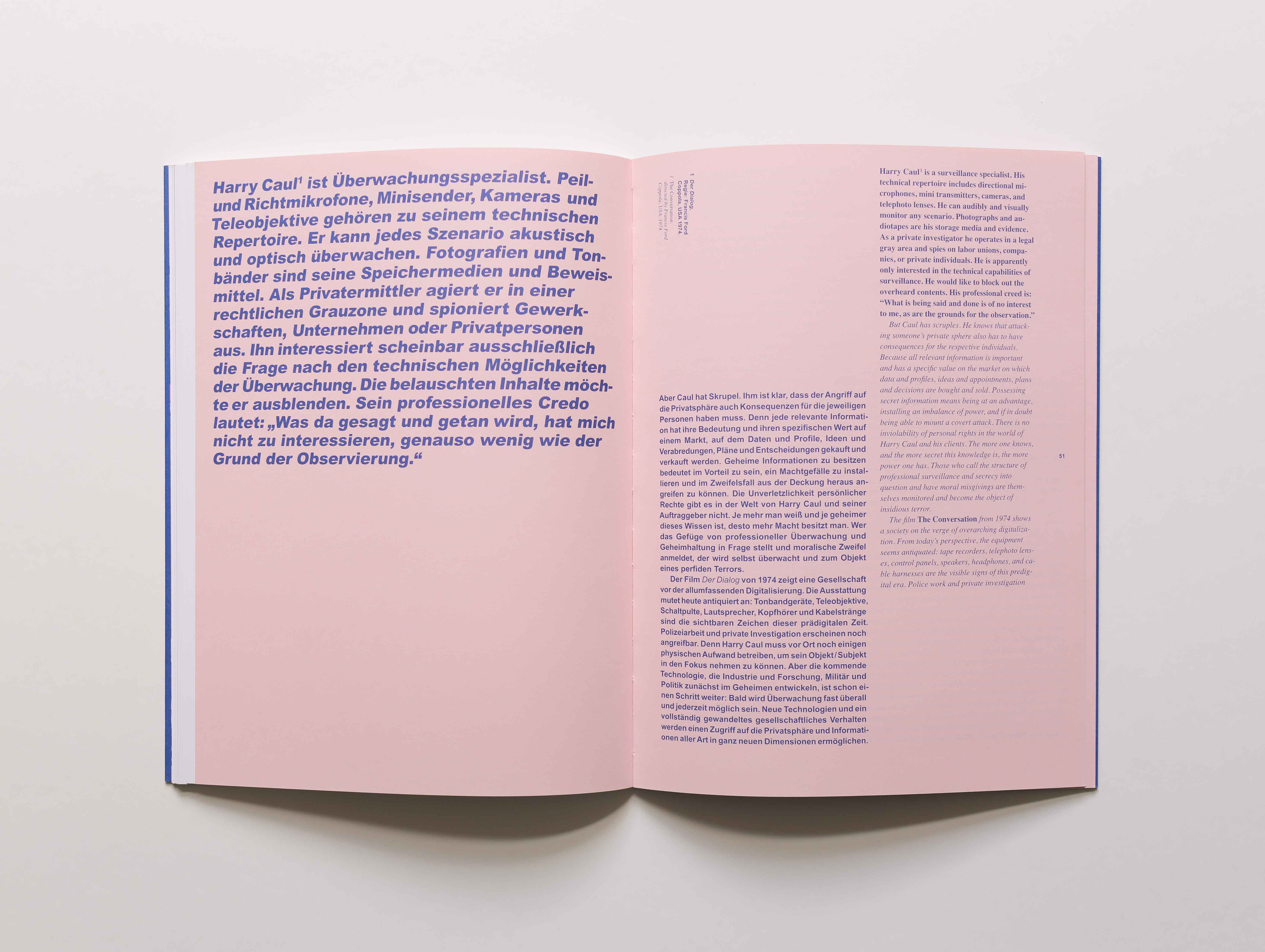 Den Katalog für die »Under Surveillance« Ausstellung küren Arbeiten von Alec Soth, Viktoria Binschtok (u.a. Titelmotiv des Covers), Manko Woltersmann und 20 weiteren internationalen und nationalen Künstler*innen. Die Ausstellung wurde von Ricus Aschemann, Peter Lindhorst und Maik Schlüter kuratiert. Dank eifrigem Einsatzes von Jerome Just erschien der Katalog bei Revolver Publishing Berlin. Die Gestaltung der bilingualen Publikation teilten sich die Else mit dem Studio Parat. Letzteres gestaltete auch den darauf folgenden Katalog »More to come«.